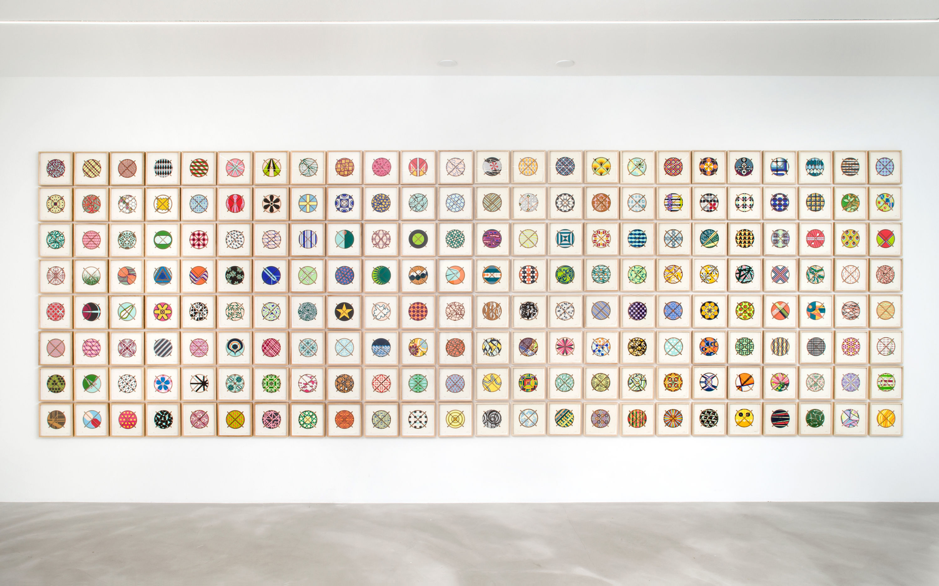 Index I and II, each an edition of nineteen, are both comprised of ninety-six woodblock prints measuring 7 5/8 inches squared on handmade Japanese Igarashi Kozo 450gsm paper. The prints feature a circular kite at the center, overlaid with a design of varying colors and impressions. Each kite was fabricated from designs sent from Hashimoto's studio which were then cut on the CNC (computer numerical control) at Durham Press and finished by hand. Both editions are available as a full set, and Index II as sets of 12. For more information, please contact us as sales@durhampress.com.